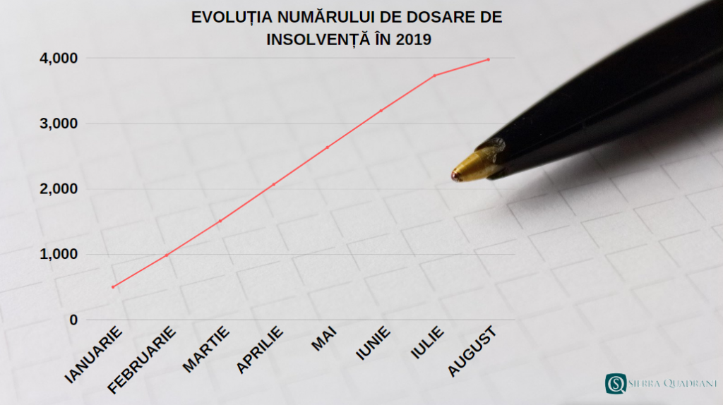 Potrivit datelor statistice, dacă în luna ianuarie, la nivelul întregii economii erau raportate numai 500 de cazuri noi de insolvență, în august numărul acestora s-a apropiat de granița de 4000 (3978 de cazuri înregistrate de ONRC).