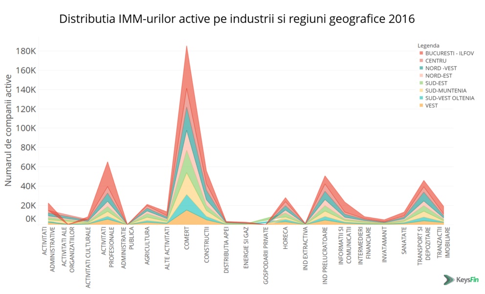 Analiza KeysFin arată, pe de altă parte, că din punct de vedere geografic, cele mai multe IMM-uri au fost înfiinţate, în ultimii ani, în Capitală, acolo unde şi comerţul este la cel mai ridicat nivel.