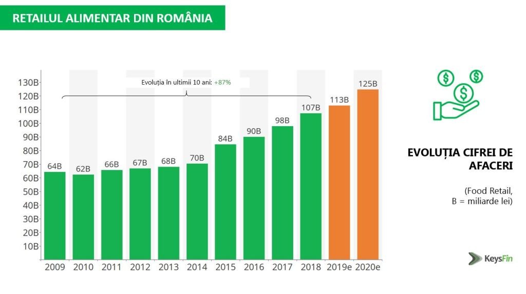 Românii cheltuie din ce în ce mai mult pentru aprovizionarea cu produse alimentare, luând în considerare cifrele de afaceri realizate de retailerii locali în ultimii 10 ani, iar situația actuală va contribui la o creștere și mai spectaculoasă a acestei industrii. Astfel, cifra de afaceri a retailului alimentar din România a fost de 107 miliarde de lei în 2018, cu aproape 67% mai mare decât nivelul din 2009 și 9,6% față de 2017, potrivit celei mai recente analize KeysFin, unul din cei mai importanți furnizori de soluții de business information din România.