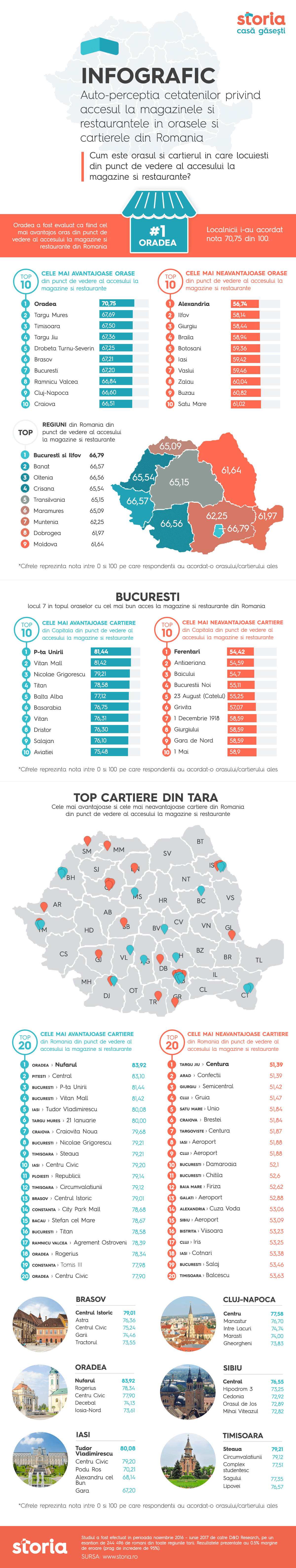 Percepția cetățenilor asupra orașelor și cartierelor cu cel mai bun acces la magazine și restaurante este cea de-a șaptea temă a studiului amplu realizat de Storia.ro și agenția de cercetare D&D Research – „Orașe și cartiere din România”, ce se va desfășura până la finalul anului 2017. Până în prezent, 244.496 de români au răspuns chestionarului propus de Storia.ro.