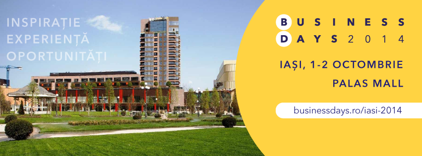 A 16-a ediţie a Business Days va reveni la Iaşi după doi ani, în perioada 1-2 octombrie, cu un program complex de acţiuni şi speakeri de top, conform tradiţiei sale formate în ultimii patru ani. Desfăşurat în cadrul Centrului de Evenimente din incinta complexului Palas Mall, Iaşi Business Days va reuni, ca în cazul ediţiilor de până acum, un număr de aproximativ 1.000 de antreprenori, middle şi top manageri, profesionişti şi specialişti din diverse arii de business.