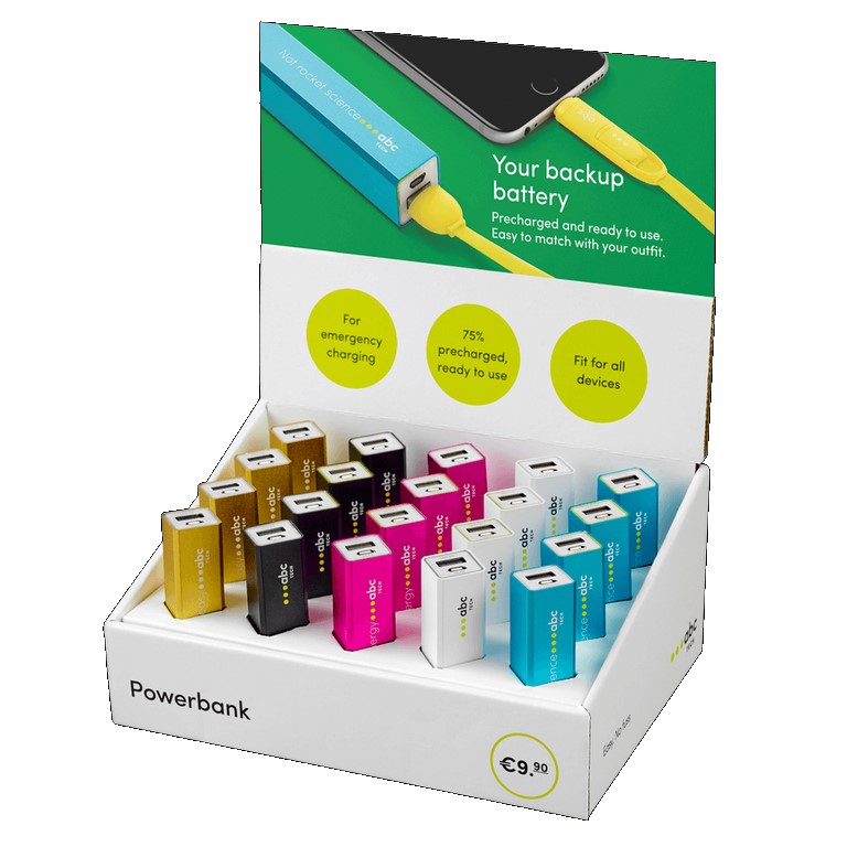 ABC Tech propune tuturor comercianţilor din retailul alimentar – şi nu numai – un nou concept de vânzări care reinventează cumpărăturile de impuls din zona caselor de marcat, spaţiul unde îşi fac loc gadgeturile şi accesoriile de mobil ABC Tech.