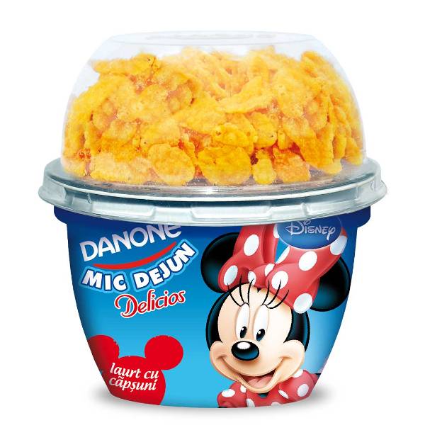 Gama include două sortimente de iaurt făcut din lapte de cea mai bună calitate de la fermierii români – iaurt alb și iaurt cu căpșuni, ambele cu fulgi de porumb. Cele două variante de iaurt se diferențiază printr-un ambalaj inspirat din personajele Disney (Minnie, Mickey, Daisy și Donald).