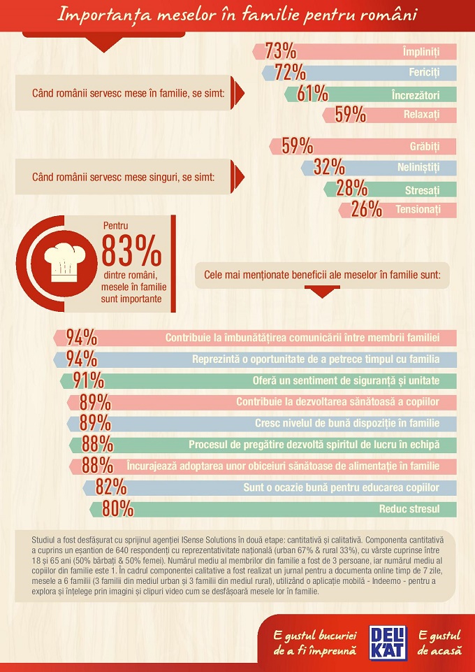 Masa în familie contribuie la consolidarea familiei, oferind un mediu în care membrii se simt protejați și mult mai deschiși spre comunicare, conform unui studiu desfășurat la nivel național de brandul Delikat.