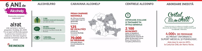 Încă din 2009, Heineken investește împreună cu partenerii lor de la ALIAT în inițiative complexe și integrate menite să prevină și să trateze abuzul de alcool, prin programul Alcohelp. În cei 6 ani de activitate au reușit să informeze peste 70.000 de persoane cu privire la riscurile abuzului de alcool.