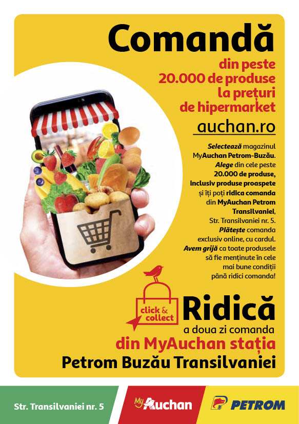 Pentru a beneficia de această opțiune, clienții din Buzău pot selecta online magazinul MyAuchan Petrom Buzău, cumpărăturile urmând a fi ridicate din MyAuchan Petrom Transilvaniei. Comenzile pot fi achitate doar online și nu necesită o valoare minimă.