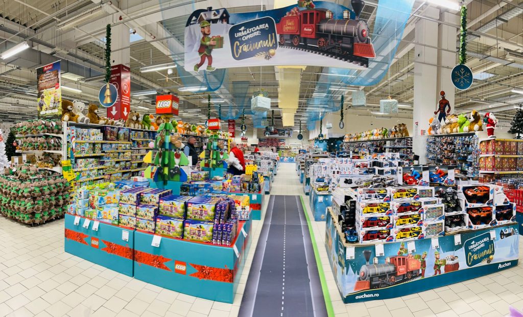 Mai mult, în magazinele Auchan Titan din Capitală și Auchan Cluj, clienții vor putea descoperi „Magazinul viitorului”, un proiect unic în Europa Centrală și de Est, realizat împreună cu cel mai mare jucător din piață de jucării, unde cei mici pot interacționa cu seturile lor de construcție favorite. De asemenea, în anumite magazine vor exista camioane cu Patrula Cățelușilor, unde cei mici vor putea sta la volan pe scaunul șoferului, o premieră în România, măsuțe de joacă, diorame pentru articolele din gama proprie și pentru seturile de construcție, figurine 3D cu eroii preferați ai copiilor, alături de care aceștia pot face fotografii, și multe alte surprize.