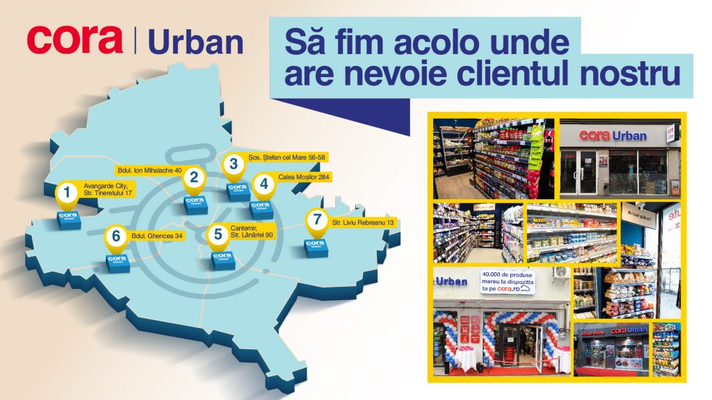 cora continuă să dezvolte cel mai nou concept al său, cora Urban, cu deschiderea în această săptămână a unui magazin în București, pe strada Liviu Rebreanu nr.13. În perioada imediat urmatoare se va deschide și magazinul din Bulevardul Ghencea nr. 34 și, în urma succesului formatului, va fi testat un concept nou în Avangarde Residence, primul magazin cora Urban, deschis în februarie 2020, care va fi extins de la 144 mp la 360 mp.