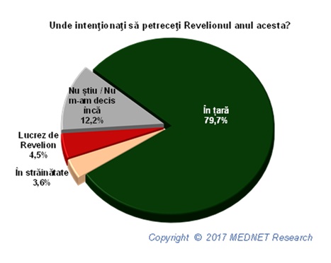 În ceea ce privește Revelionul 2018, 79,7% dintre respondenți intenționează să-l petreacă în țară, în timp ce numai 3,6% vor pleca în străinătate.