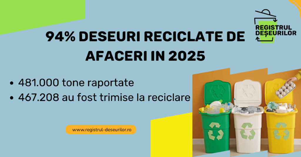 94,1% dintre deșeurile raportate de firmele din România au fost reciclate în 2025, potrivit unui set de date agregate provenite din evidențele de gestiune ale operatorilor economici raportate in Registrul Deseurilor.