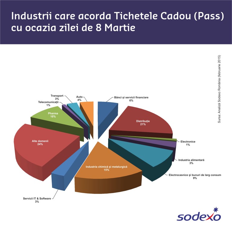 Peste 45% dintre companiile care au acordat în 2014 tichete cadou angajatelor lor cu ocazia zilei de 8 martie activează în sectorul industrial, servicii și distribuție. În top trei industrii s-au situat angajatorii din distribuție (20%), industria chimică și metalurgică (15%) și industria producătoare de bunuri de consum (10%). Majoritatea companiilor (52%) care au acordat acest beneficiu extrasalarial angajatelor lor au între 1 și 19 angajați. Peste 27% din totalul companiile angajatoare sunt din București și județul Ilfov.