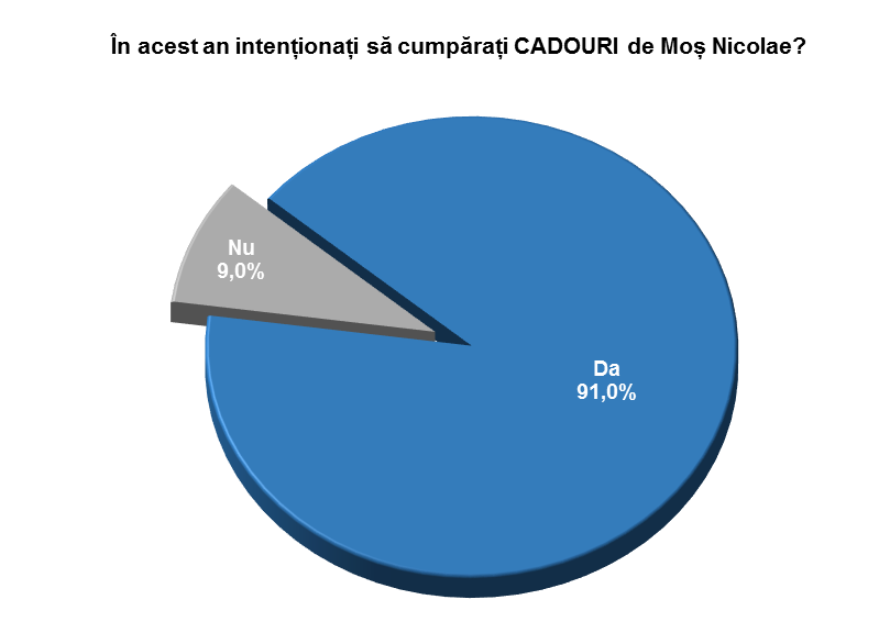 Intenția de a face cadouri de Moș Nicolae este foarte mare, fiind tot mai ridicată de la an la an, conform datelor celui mai recent studiu de piață realizat de către MEDNET Marketing Research Center.