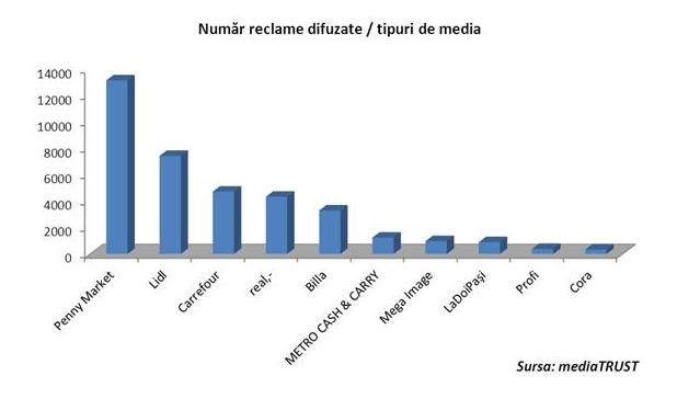 Potrivit mediaTRUST, unul dintre cei mai importanţi furnizori de servicii de monitorizare, Penny Market, Lidl și Carrefour sunt retailerii cu cel mai mare volum de publicitate pe segmentul lor de activitate, în primele trei luni ale anului 2013.