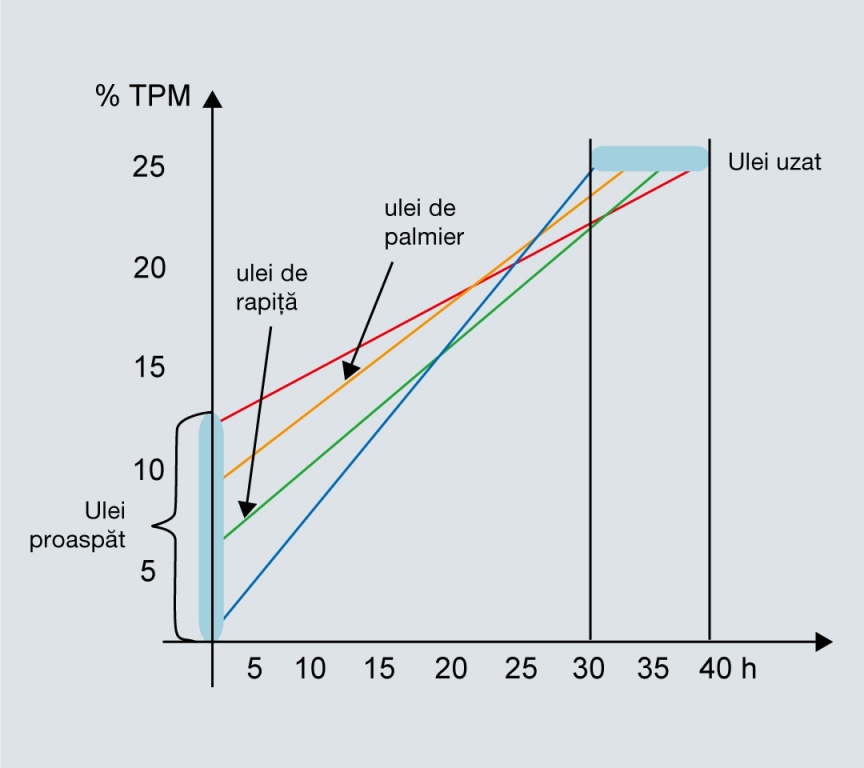 Totuşi, trebuie menţionat aici că valoarea TMP pentru uleiurile proaspete poate varia în funcţie de sortiment. De exemplu, uleiul de palmier are un nivel mai ridicat de TPM decât uleiul de rapiţă. Aceasta se datorează compoziţiei acidului gras.