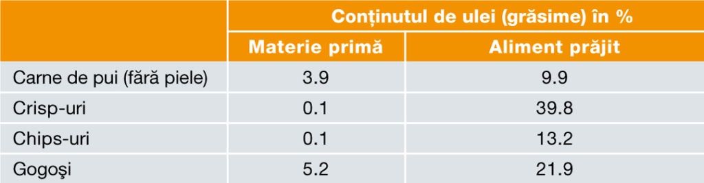 De exemplu, cartofii prăjiţi, devin goi pe dinăuntru. Ca rezultat al pierderii rapide a apei, dispare şi acoperirea de protecţie din aburi, ceea ce înseamnă că uleiul intră în contact cu suprafaţa alimentului pentru o durată mai lungă de timp.
